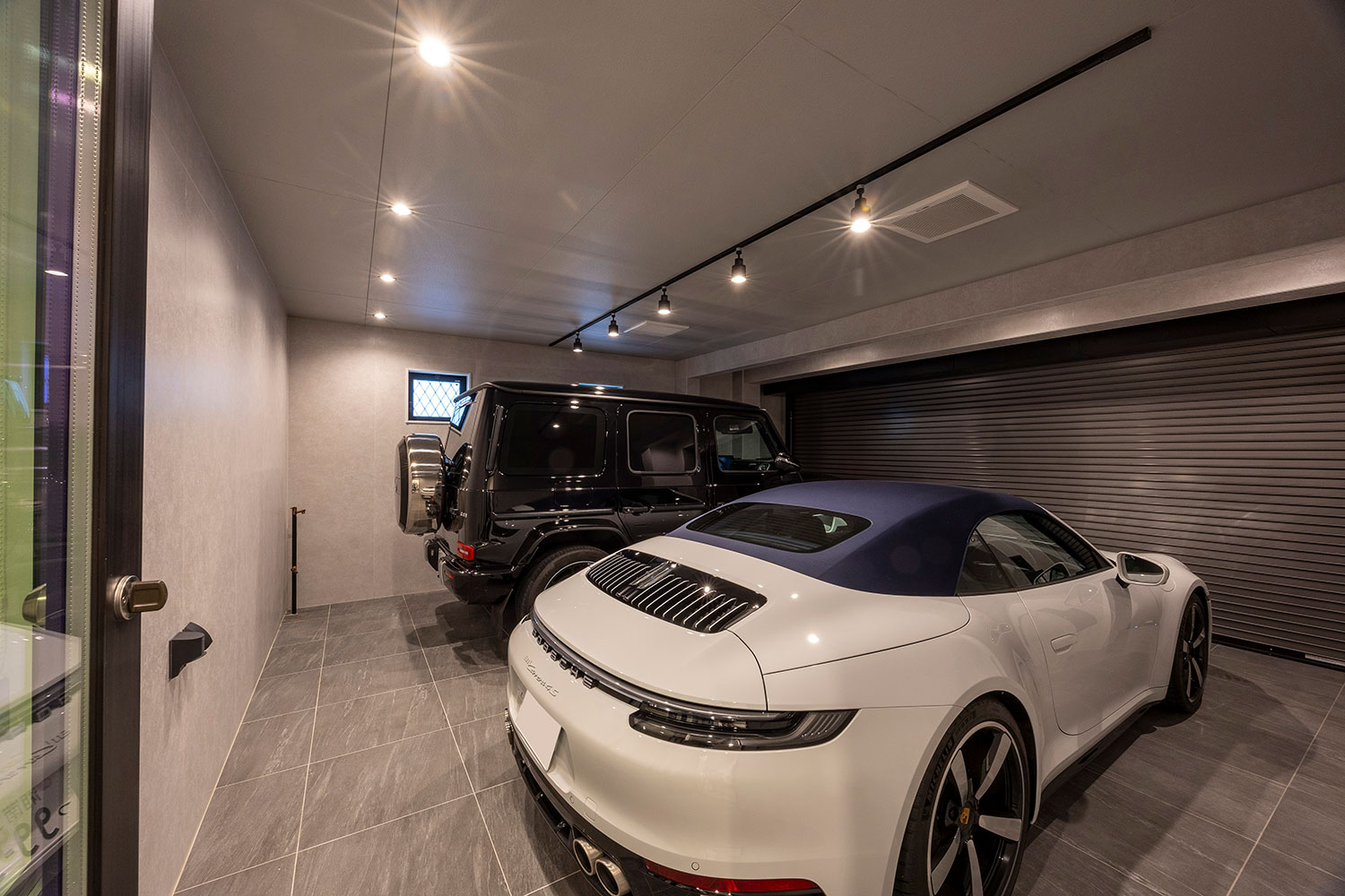 収納も充実した、長期優良認定住宅、耐震等級3取得。ビルトインガレージ2台。